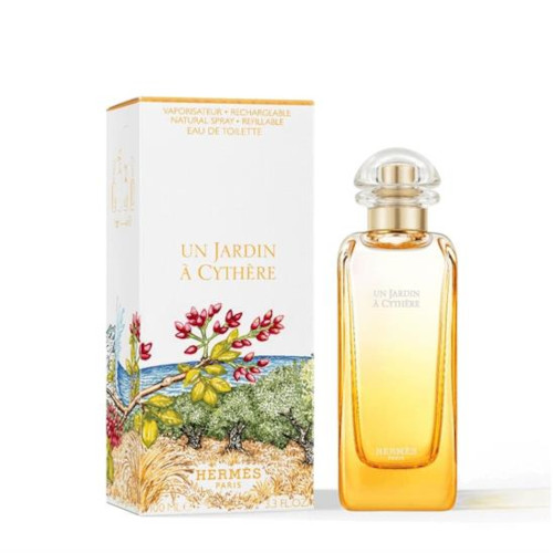 L’Eau de Toilette Un Jardin à Cythère, creata da Christine Nagel, è un giardino a sorpresa che non è né verde né floreale, ma piuttosto… biondo. È il riflesso di un viaggio aromatico attraverso la Grecia che termina a Citera, un’isola affascinante che è stata fonte di creatività per numerosi artisti. L’Eau de Toilette Un Jardin à Cythère è un profumo agrumato e legnoso che unisce le confortanti note erbacee alla tenacia del legno d’ulivo e alla delicatezza del pistacchio fresco. Il flacone è stato creato da Fred Rawyler, che si è ispirato alle luci delle carrozze d’epoca. Il profumo allegro è ripreso dal vetro giallo brillante. Elias Kafouros, l’artista, raffigura sulla scatola una vivace scena della sua terra natale, la Grecia: pistacchi rosa freschi, ulivi verdi e prati dorati. Il tema annuale scelto da Hermès si combina con l’essenza di un luogo, l’ispirazione del profumiere e la linea Parfums-Jardins. Ogni momento di freschezza, fantasticheria o evasione viene soddisfatto con un viaggio aromatico.