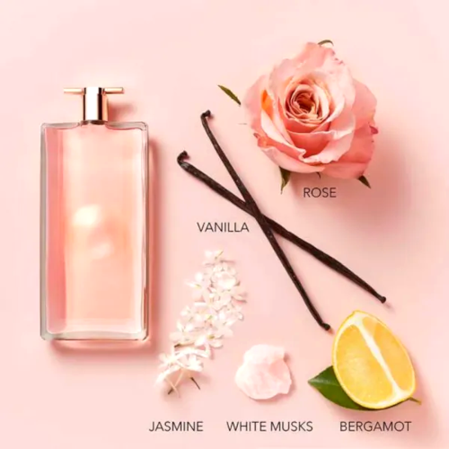 Il gelsomino è uno dei fiori più incontaminati e delicati della profumeria. Il cuore di rosa di Idôle è accompagnato dall’olio essenziale di gelsomino, che emana una dolcezza vellutata, pura e intensa. Questa nota di cuore floreale conferisce a Idôle la sua aura, una luce che riempie l’eau de parfum di radiosa sensualità dall’inizio alla fine.